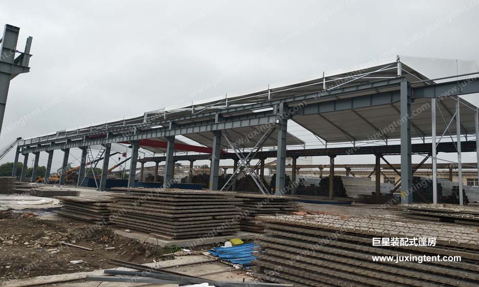 當遇到強臺風過境,天氣預報報告10級以上大風時,我們就需要將篷房整體拆除了。篷房對比于其他臨時建筑優點就在于,篷房隨拆隨搭,拆除篷房將型材與篷布固定放置于場地兩側,等臺風天過后,即可重新搭建,并且常州巨星篷房采用螺栓固定結構,重新搭建的過程中并不需要焊接,即快又便捷,這也是常州巨星篷房產品的一大特色。